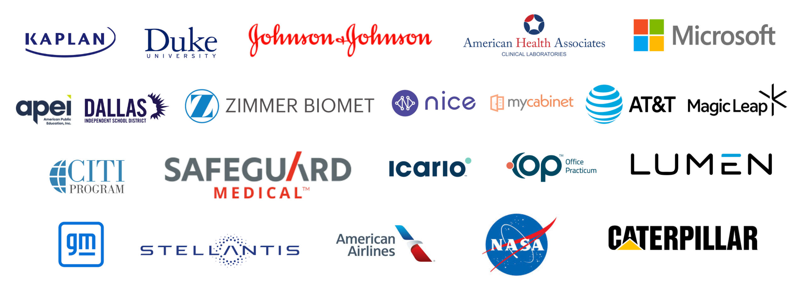 Partnered with Fortune 500 companies including Johnson & Johnson, Zimmer Biomet, Safeguard Medical, and Terex Heavy Equipment